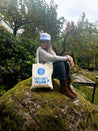 Tämä kangaskassi muistuttaa siitä, että maailma ei ole mustavalkoinen — eikä eettisyys ja ekologisuus synny siitä, onko jokin tuote kasvi- vai eläinperäistä. Molempia voi tuottaa kestävästi- ja ei kestävästi.